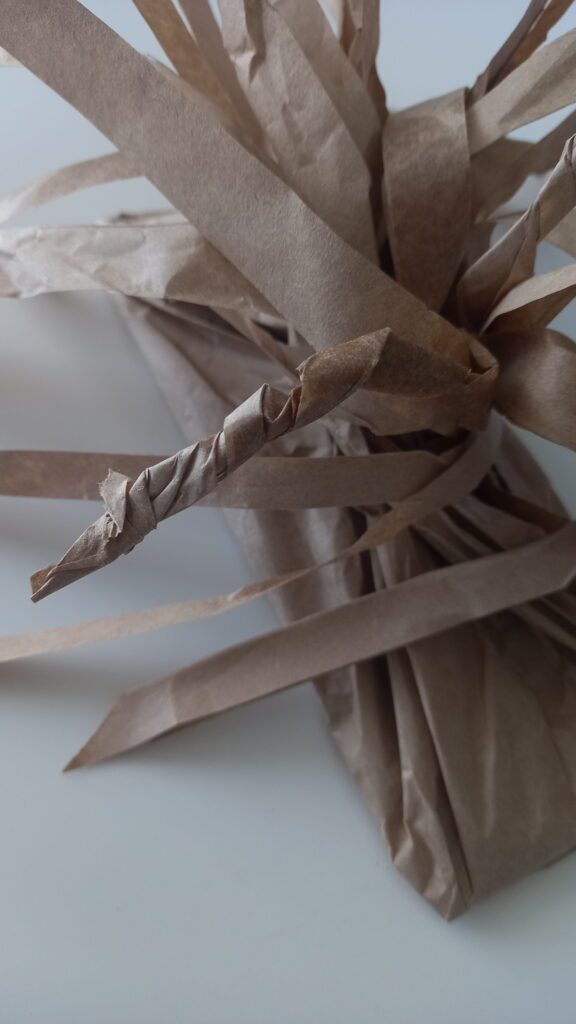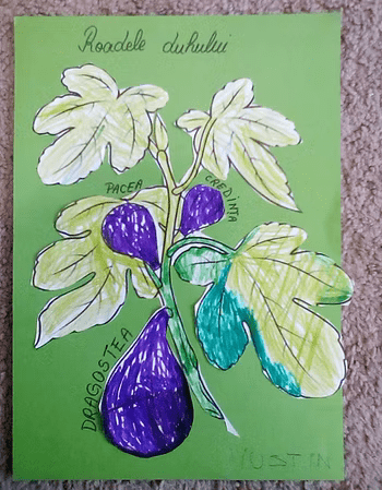 Mai jos sunt pașii realizării unui copac din punga de hârtie. Smochinul este la final decorat cu smochine din carton colorat, pe care notăm faptele bune pe care le facem zilnic, încurajând astfel și un comportament dezirabil.