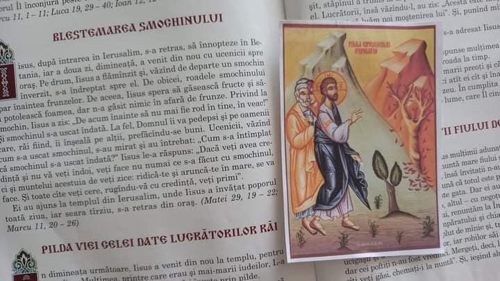 De regulă citim în Noul Testament pentru copii capitolul/capitolele dedicate zilei, însă dacă nu aveți cartea, puteți citi Evanghelia zilei de luni online aici. Postlectură deschid discuții fie despre asemănarea lui Iosif cu Hristos, menționând și cele două momente ale vânzării: a lui Iosif de către frații săi și a lui Hristos de către Iuda, fie despre episodul uscării smochinului neroditor. Alternăm episoadele citite an de an. Pe măsură ce cresc și copiii, reușesc să aibă și o înțelegere mai profundă a episoadelor pe care le tot reluăm.