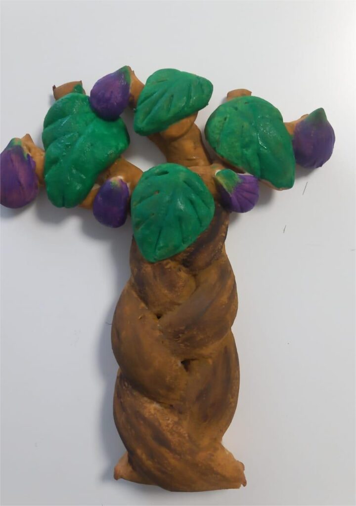 1. Inspirați de Evanghelia smochinului neroditor, în 2018, când copiii aveau 5 și 3 ani, am realizat un smochin dintr-o pungă de hârtie și am completat activitățile cu studiul botanicii, după metoda Montessori.