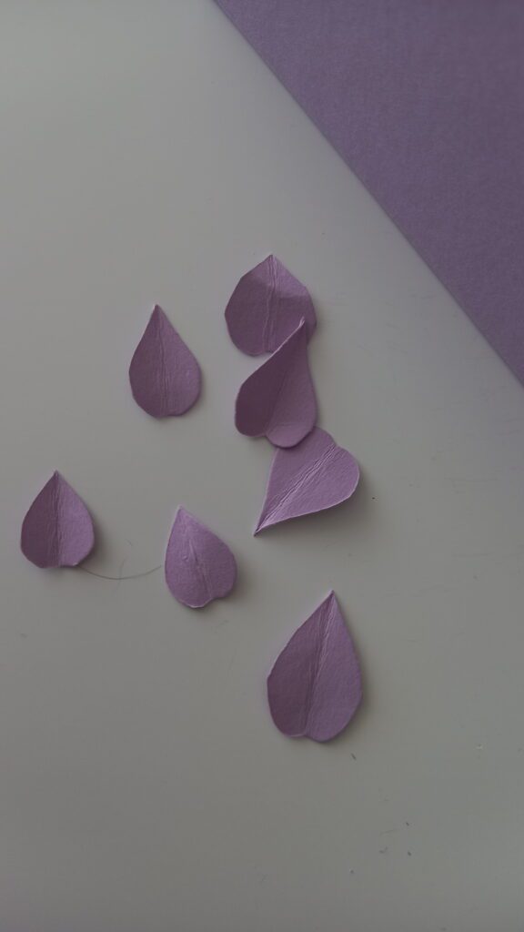 Pas 4: Pentru realizarea frunzelor, modelează cel putin 6-7 „mingiute”. Alungeste-le la varf, piscându-le cu degetele, apoi cu un obiect subtire (scobitoare) creează nervurile frunzelor, apăsând pe aluat pentru imprimare.